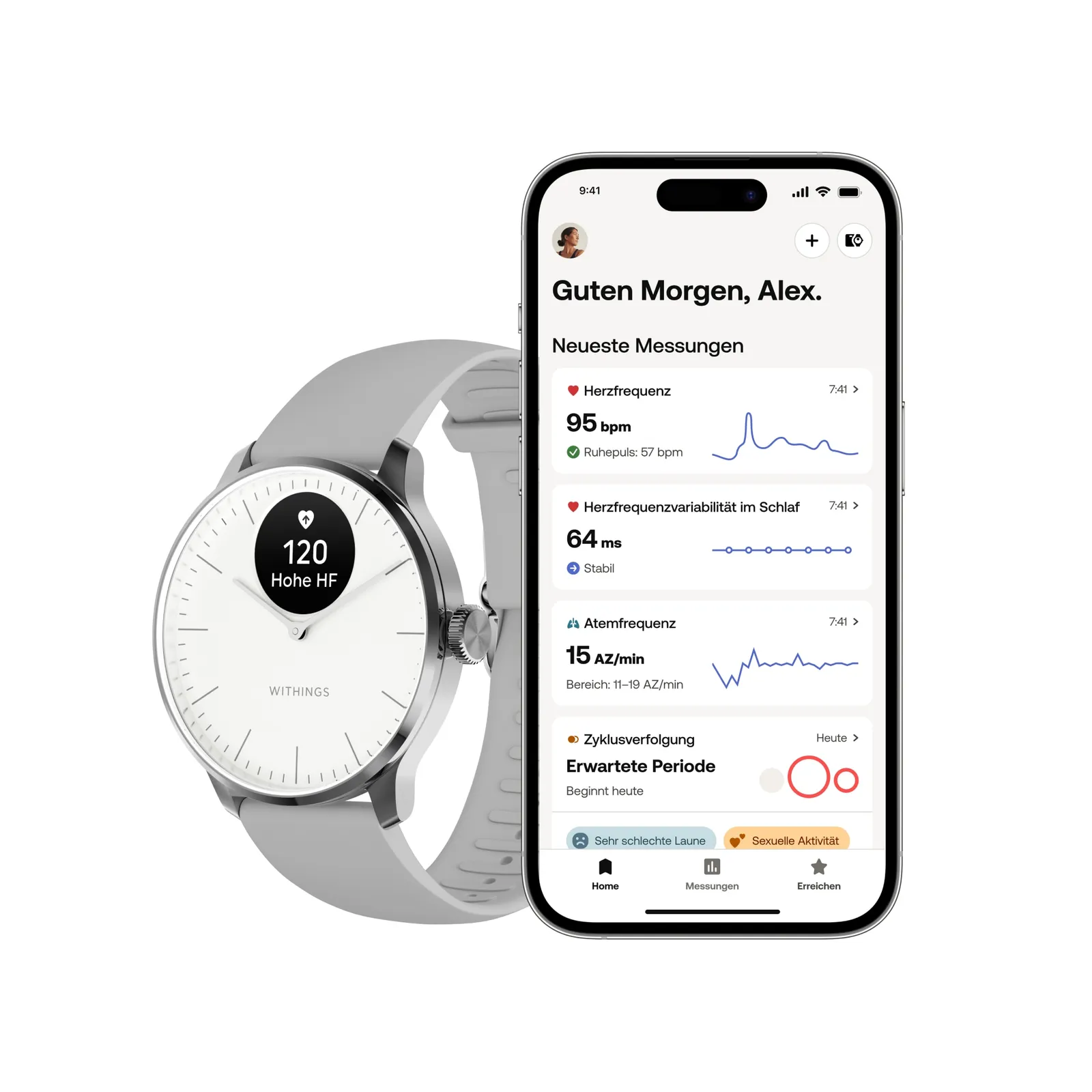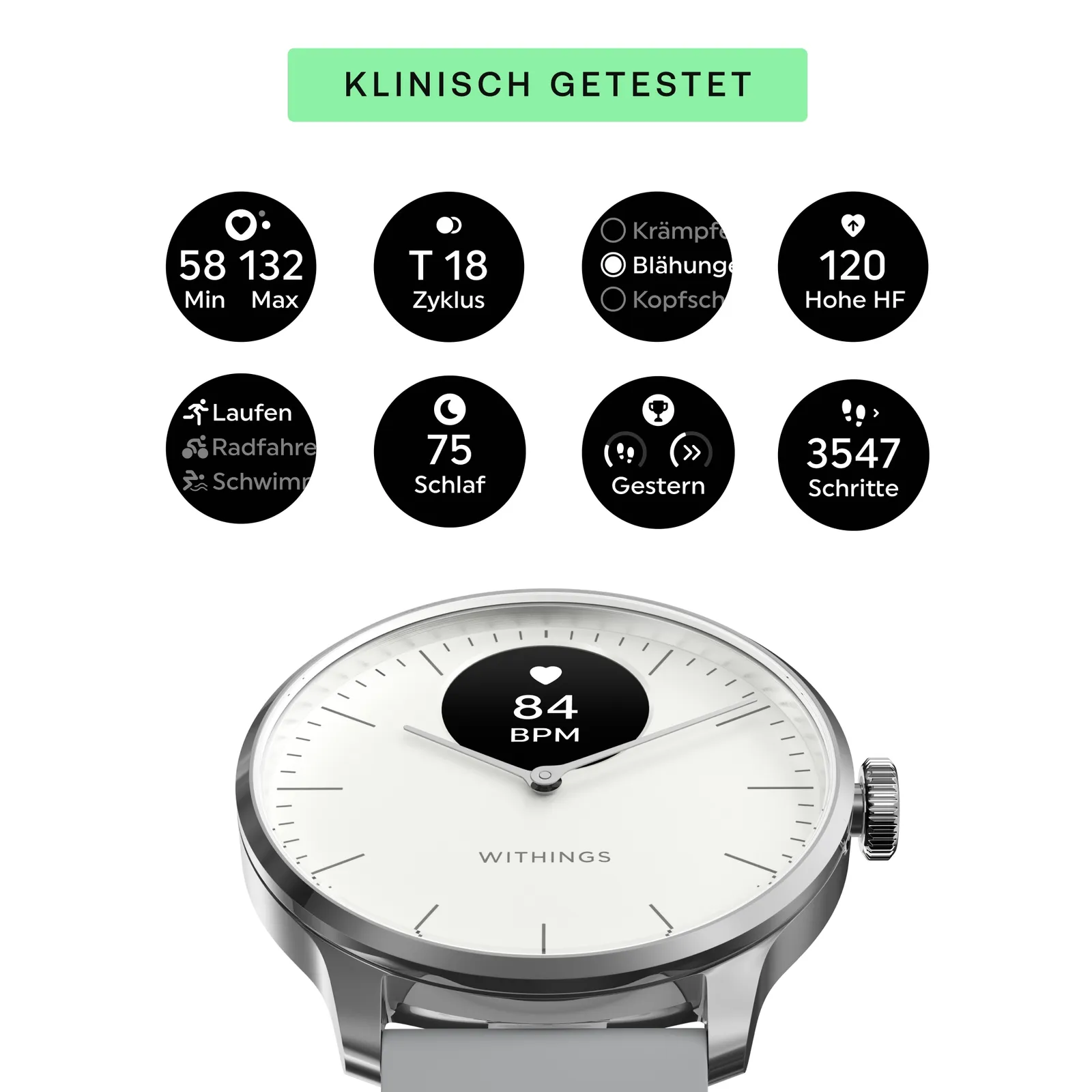Withings ScanWatch Light weiß/grau Herzfrequenzmessung